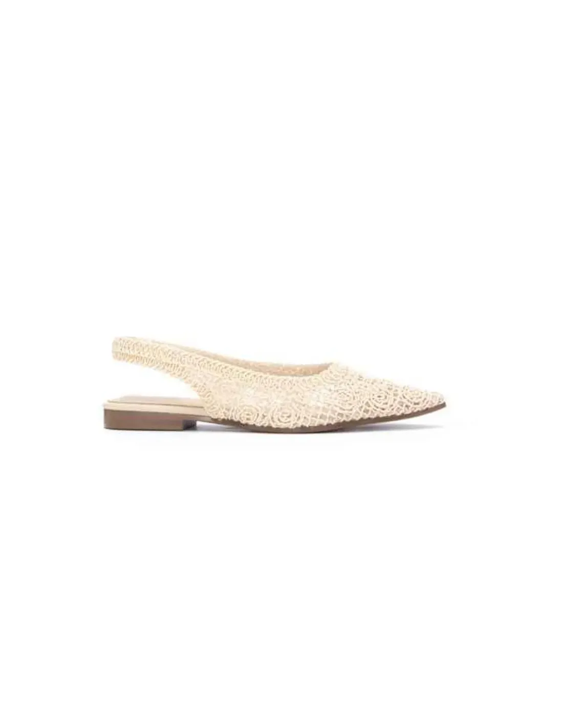 Zapato de mujer, de la marca Xti. Bailarina plana, fabricada en suave material que ofrece gran comodidad. Presenta un bonito diseño trenzado que aporta un toque artesanal y elegante. Modelo destalonado, con una tira sujeta al tobillo que garantiza un ajuste seguro y cómodo. Ideal para looks casuales y veraniegos. Cuenta con suela antideslizante, para mayor seguridad en cada paso. Este modelo ha obtenido el certificado vegano por la organización mundial PETA (Organización de los derechos de los animales).