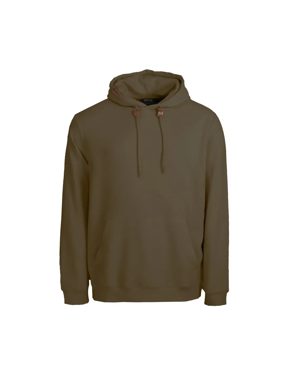 Esta sudadera de entretiempo INDICODE en color oliva es una prenda versátil y moderna. Confeccionada en un tejido ligero con relieve, cuenta con capucha ajustable, manga larga y corte regular, lo que la convierte en el aliado perfecto para looks cómodos con un aire street.