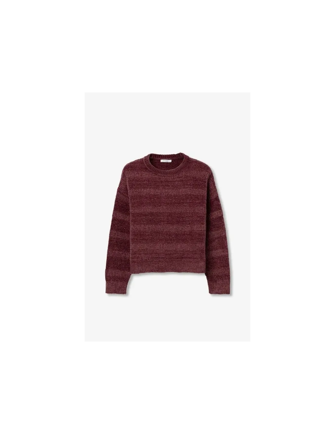 🍷 Jersey de Punto Chenilla Burdeos a Rayas – Tiffosi Mujer