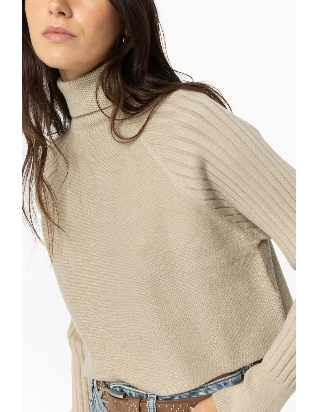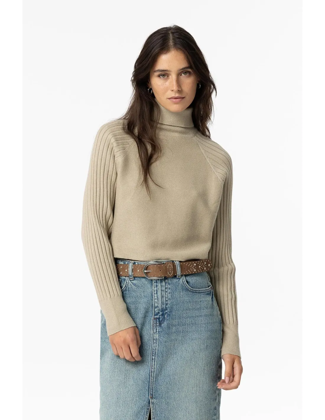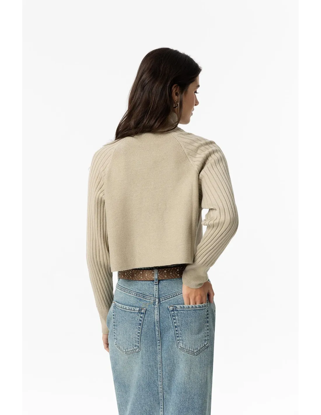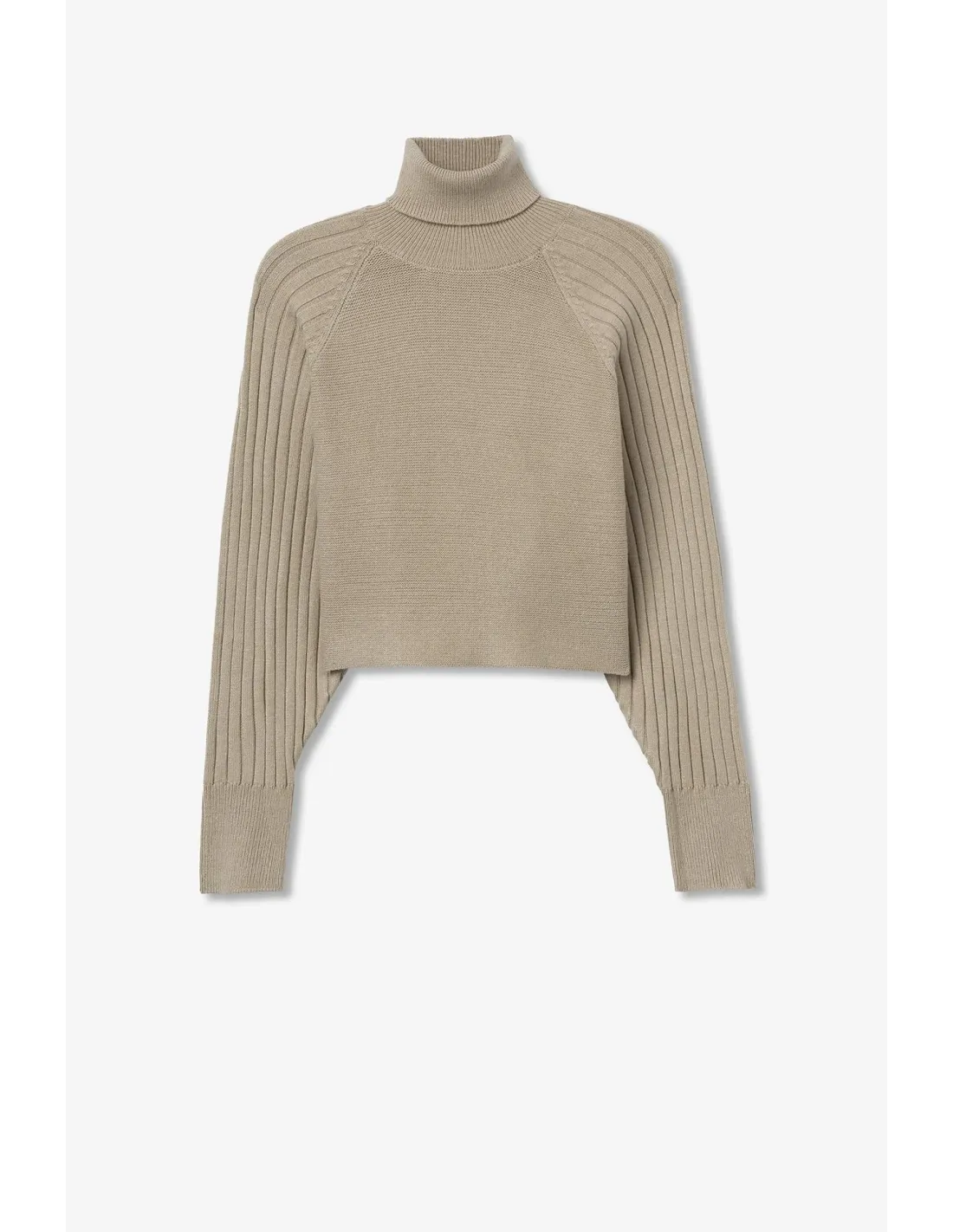 Jersey de punto, con manga raglán de canalé y cuello alto.