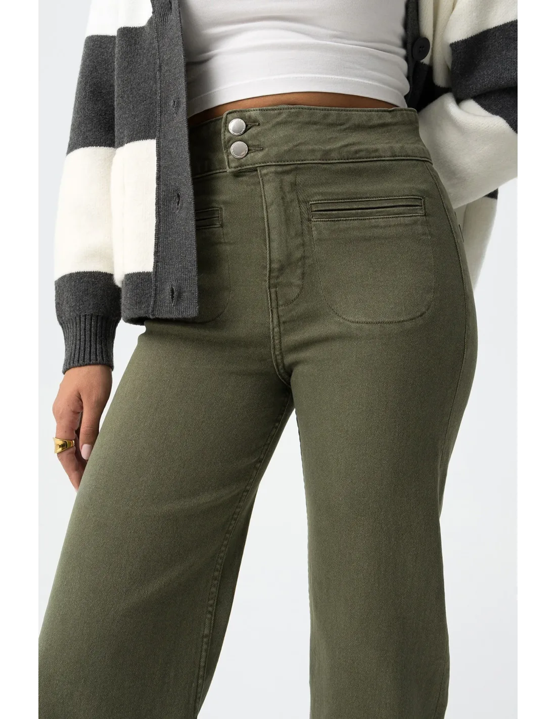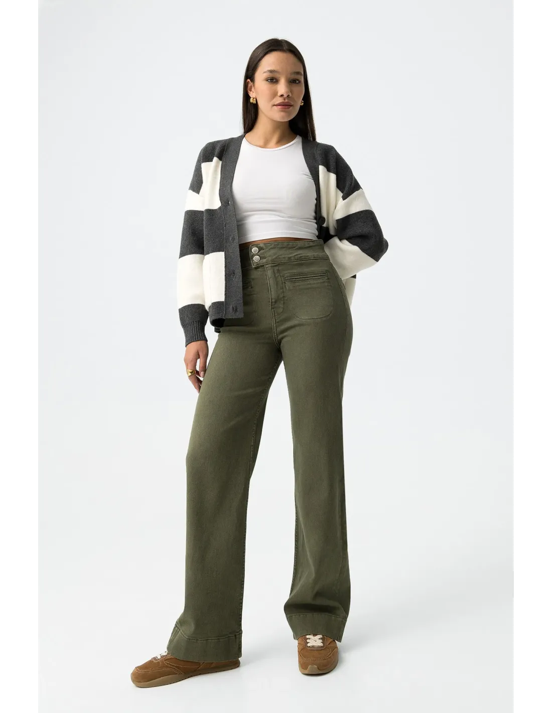 Jeans Rectos Verde Oliva – Cierre con Botones | Tiffosi Mujer 🍃👖